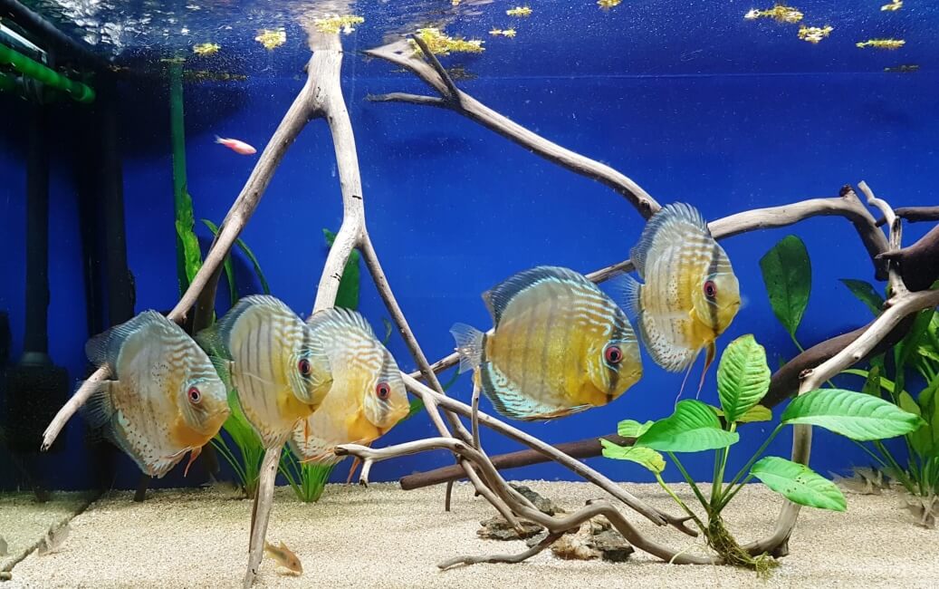 Alimentación | Los discos salvajes llegaron comiendo un poco de «bloodworms» en conserva y algo de gránulo (Tetra Color). Pronto dejaron de comer bloodworms a medida que pasaban los días con la lata abierta en el refrigerador y también poco a poco los gránulos. Nunca les gustó el gránulo verde de spirulina de Tropical. Sin embargo, el Tubifex liofilizado les gustaba más. Empezaron a comer vorazmente los mejillones. Comprados frescos, hervidos y congelados, sólo la parte naranja. Posteriormente comencé a dar camarones frescos, limpiados, hervidos y congelados. Todo cortado en pedazos que puedan engullir de una vez. Con eso se acabó el gránulo. |