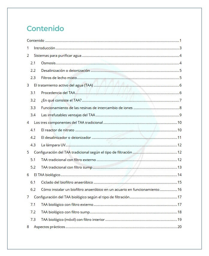 “El Tratamiento Activo del Agua” es un libro digital (formato pdf) que describe un método para tratar el agua del propio acuario, que permite ajustar los parámetros, ahorrando agua potable y tiempo.