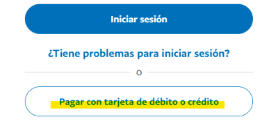 Para el pago, serás dirigido a la página de Paypal. Si no tienes cuenta de Paypal, puedes pagar de forma segura con tarjeta de crédito o de débito, haciendo click en el botón blanco.